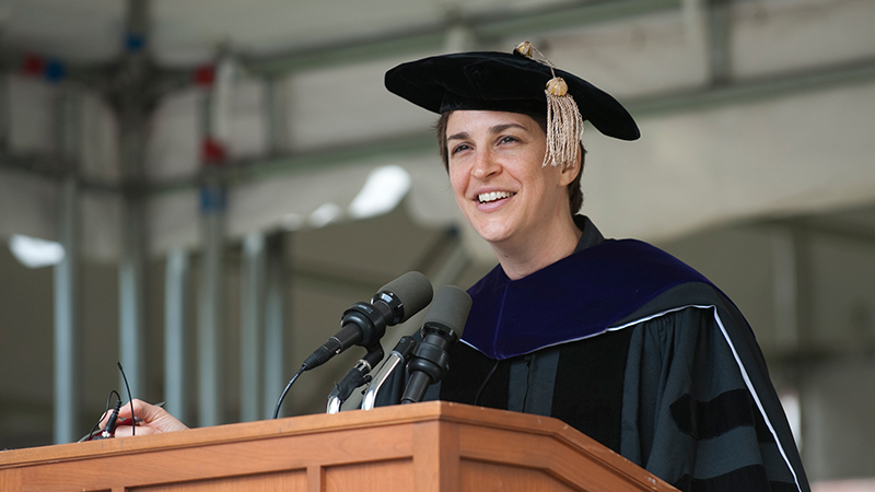 In addition to Smith, honorary degrees were awarded to cartoonist, memoirist and MacArthur Genius Award winner Alison Bechdel, author of Fun Home and Dykes to Watch Out For; Roslyn Brock, chairman of the NAACP board of directors; Ruchira Gupta, a leader in the international fight against sex trafficking; American soccer icon and Olympic and World Cup champion Abby Wambach; and NASA astronaut Stephanie D. Wilson.