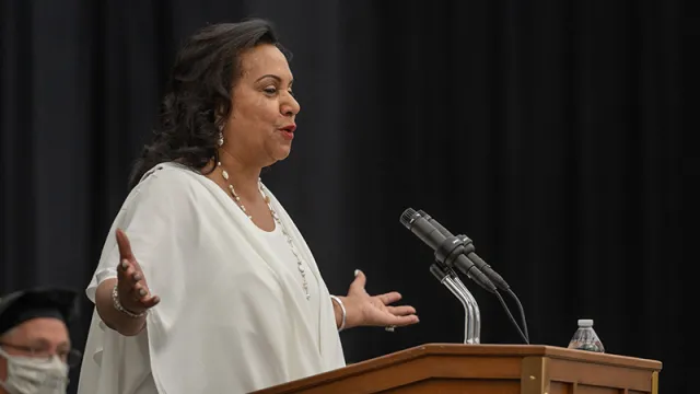 As I stand before you to officially welcome you in becoming alums, I want you to know being an alum is an invitation to lifelong relationships, engagement and connection to Smith and to Smithies. I want you to know this is your inheritance. As you receive your diplomas and pass through the Grécourt Gates, we—your siblings from every demographic of race, ethnicity, identity, geography, career and imagined reality—stand with open arms to embrace you, guide you and walk along beside you. Know this: We got you ... and, you are ready.