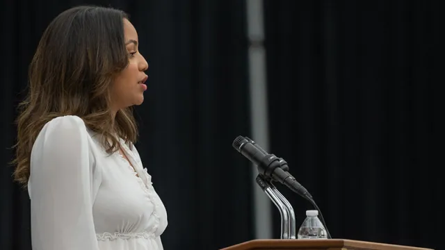 Hello, Smith College, my name is Esther Rose Mejia and I am your student body president. I am honored to address my graduating class and share an expression of gratitude with the Smith community. I want to take you all on a quick reflective journey.