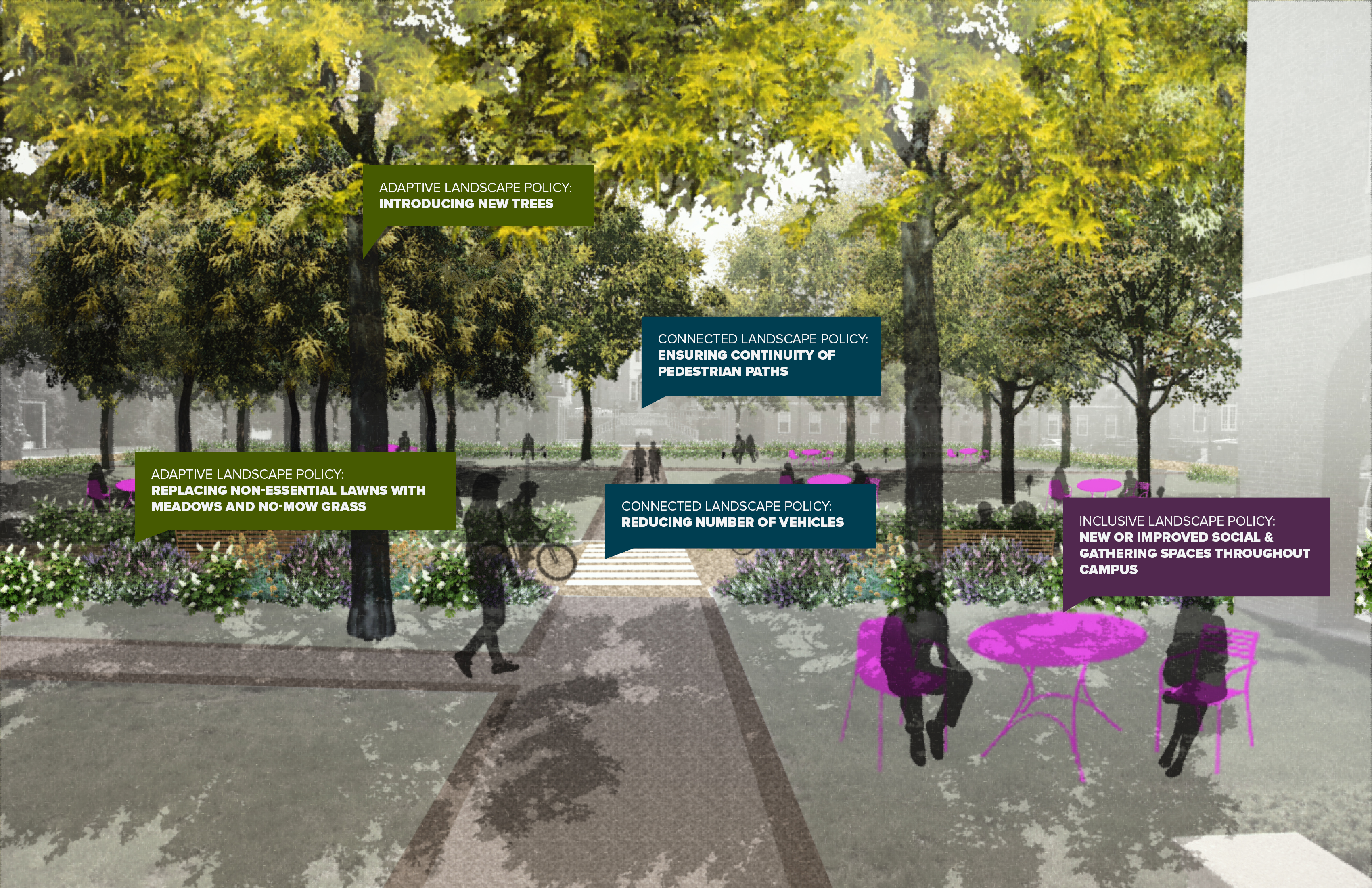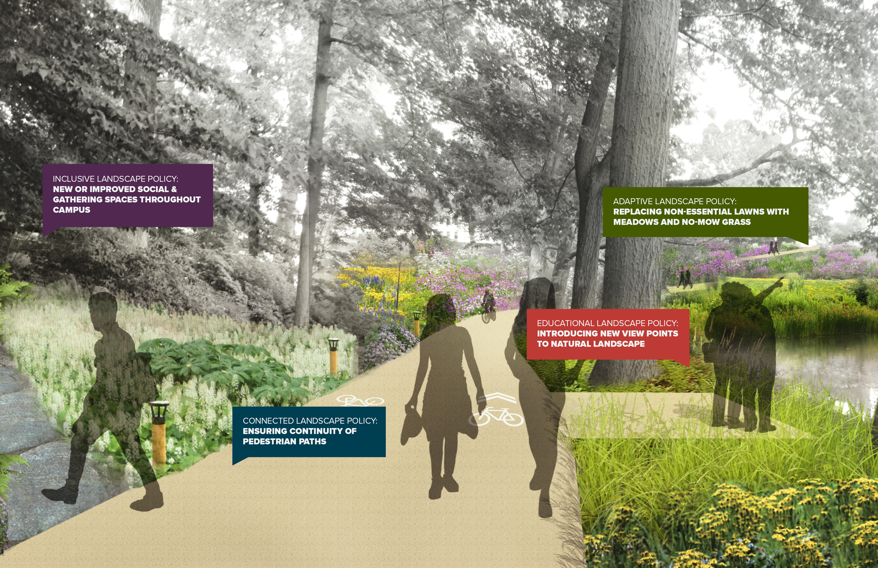- There is a desire for a campus landscape that is more clearly designed to be used, not just admired; these uses would include learning, community building, and relaxing with the grass between your toes.