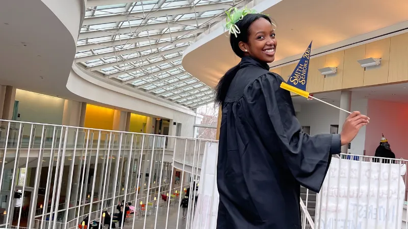 One defining memory is definitely the first time my mother and I set foot on campus when she was dropping me off at the start of my first year. We were both realizing the adventure I was in for as we were taking in Smith that had been until recently a website and brochures. Since then, my favorite memories at Smith have been mosaics of all the wonderful humans I’ve been blessed with having in my life and the many firsts I experienced like learning how to cross-country ski, jumping off a 42-foot tree at a high ropes course, mountain biking and so many more.