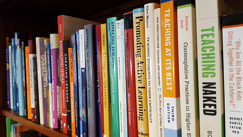 A bookcase of resources on teaching and learning and on succeeding as a professor resides in Seelye Hall B8. Faculty and staff members should feel free to browse on site and sign out books to read at greater leisure. If you have a suggestion for a book we do not have, please let Sara Pruss know.