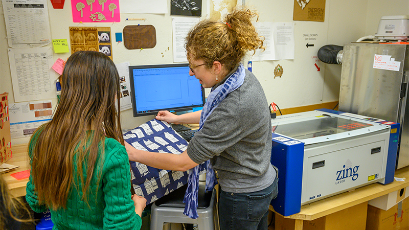 As a makerspace within a women’s college, we are committed to providing access to traditional craft technologies alongside digital fabrication tools because the latter would not exist without the former. Student leaders in our space foster a safe and welcoming studio environment while supporting peers in their imaginative pursuits.