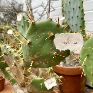 The botanic garden regularly hosts exhibits that explore how social and environmental justice, the arts, and more intersect with the botanical world. One such exhibition, A REIMAGINING: what is a label?, featured the work of Gretchen Hammell ’24, and was the result of her second practical experience for the Book Studies Concentration. Through a series of eight works installed throughout the greenhouses, Hammell asked, “what do labels do?” There is perhaps no better place to explore this question than in Lyman where labels are found in every pot.