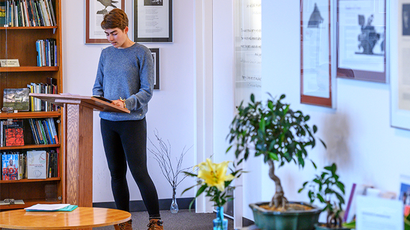 Making poetry accessible to a wide audience has always been a part of The Boutelle-Day Poetry Center’s mission. In addition to special initiatives and facilitating poetry-related collaborations on campus, we regularly offer blocks of reserve seats at our readings to local schools and community groups. We donate a book by each visiting poet to the Northampton High School library, and we offer Smith students assistance with their annual poetry slam. We have collaborated on programming with The Emily Dickinson Museum, Northampton Arts Council, Sustainable Step New England and others.