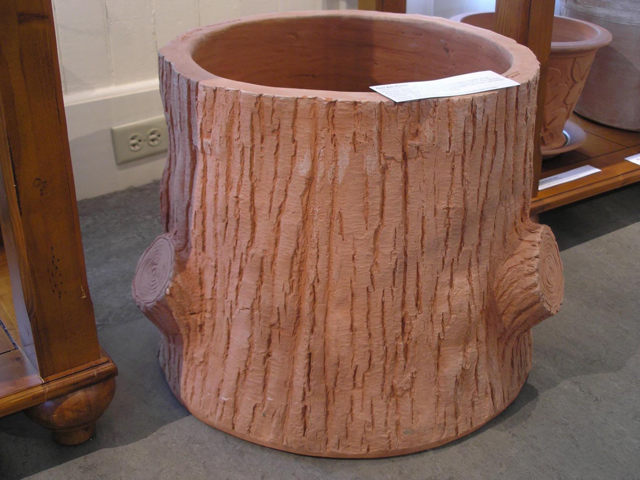 Planters resembling tree trunks have been made since Roman times. They were particularly popular in the United States in the late 19th century and were common cemetery planters, often made of concrete.