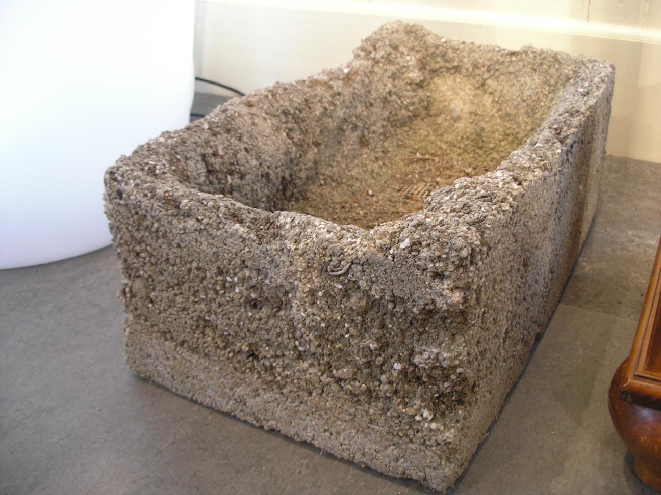 Hypertufa is a combination of cement and peat. Typically used to make troughs, the hypertufa in this modern design is fashioned more like a typical flowerpot.