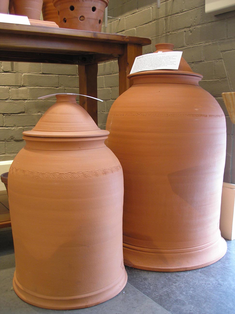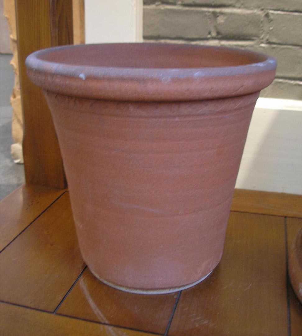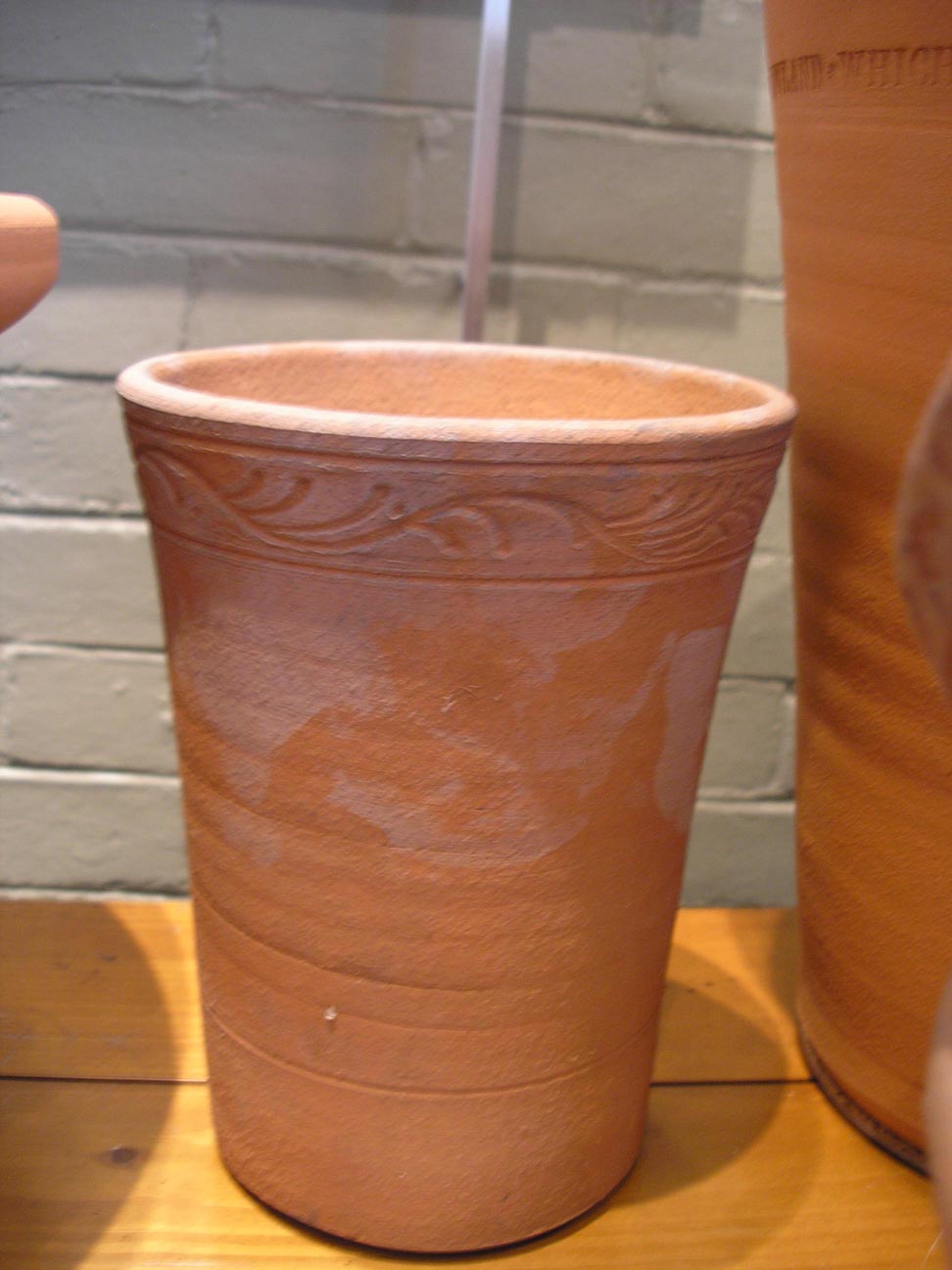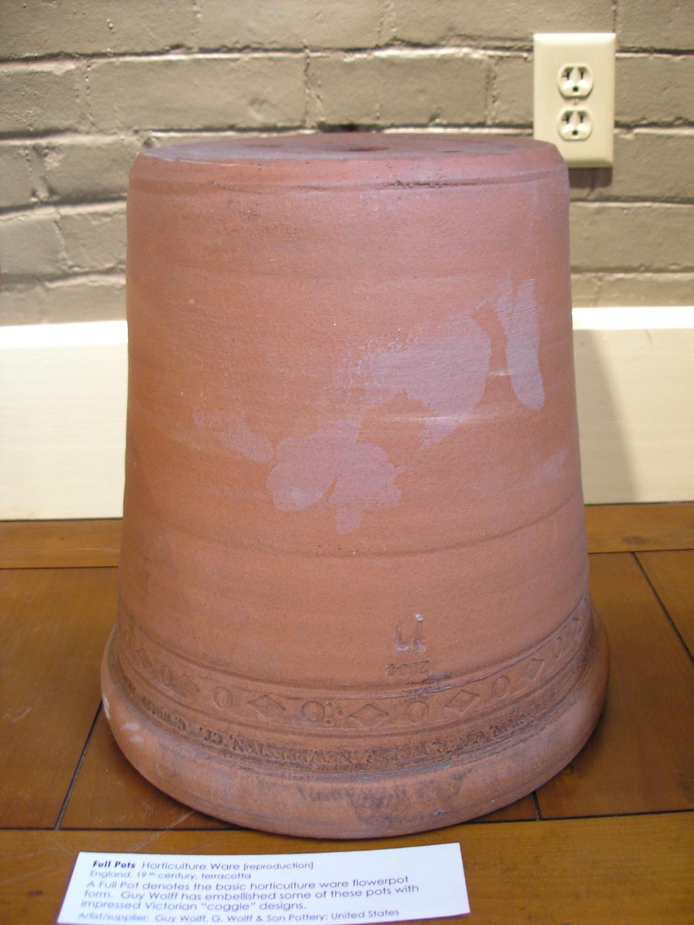 A Full Pot denotes the basic horticulture ware flowerpot form. Guy Wolff has embellished some of these pots with impressed Victorian "coggle" designs.