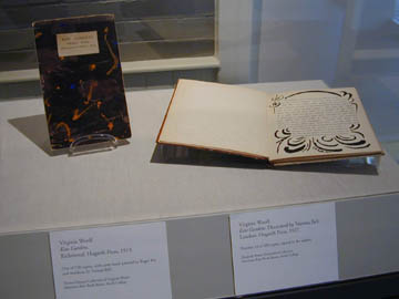 | Virginia Woolf, Kew Gardens. London: Hogarth Press, 1927. Number 16 of 500 copies, signed by the author. Decorated by Vanessa Bell. Elizabeth Power Richardson Collection, Mortimer Rare Book Room, Smith College (right in case) |