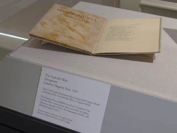 | Vita Sackville-West, Sissinghurst London: Hogarth Press, 1931. One of 500 copies hand-printed by Leonard and Virginia Woolf and dedicated to Virginia Woolf. The Hogarth Press published a total of 15 books by Vita Sackville-West, some of their most successful, including Seducers in Ecuador (1924), the Edwardians (1930), and All Passion Spent (1931). Frances Hooper Collection of Virginia Woolf, Mortimer Rare Book Room, Smith College (left in case) |