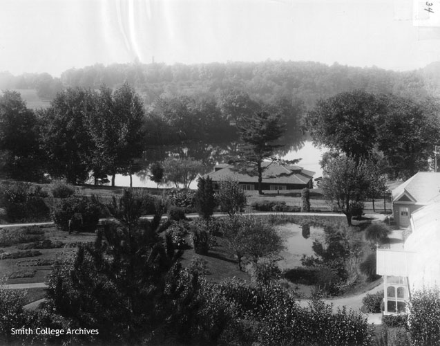 Lyman Plant House from the herbaceous garden. Photograph by White,