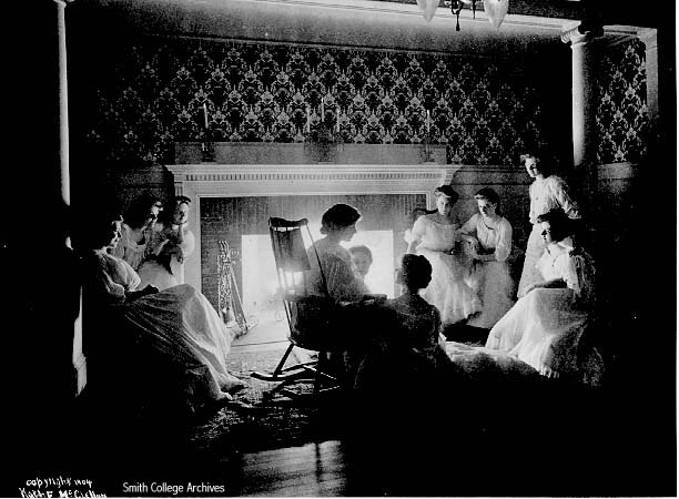 Haven House fireside, 1904. Photograph by Kath. E. McClellan. |