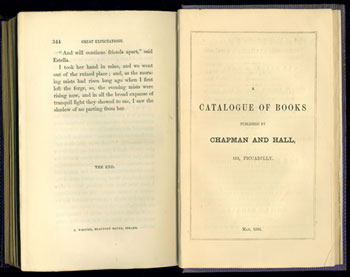 Great Expectations was first published as a "three-decker" (in three clothbound volumes) in June 1861, shortly before the end of its magazine serialization in All the Year Round. It was never issued in monthly parts. The 3-volume edition, in original condition, is quite rare; according to Dickens bibliographer John Eckel, "nearly the entire first edition [of 1000 copies] was bought up by the libraries." These were lending libraries, which charged