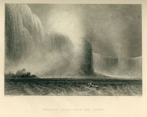Other nineteenth-century visitors to the United States were equally impressed by the picturesque landscape. Nathaniel P. Willis' American Scenery (published in London in 1840) includes William Bartlett's image of Niagara Falls, just as Dickens would have seen it two years later.
