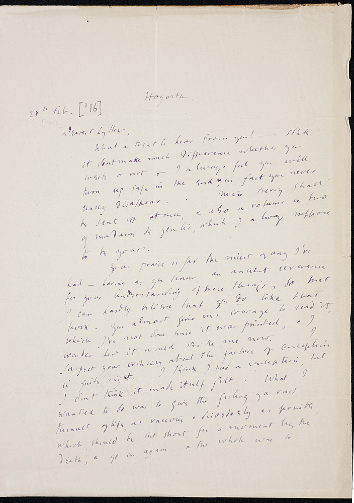 Virginia Woolf. Letter to Lytton Strachey, 28 February 1916.