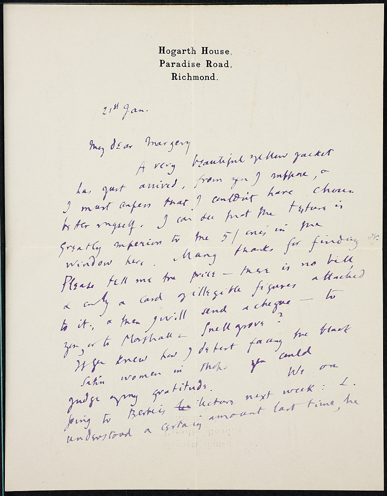 Virginia Woolf. Letters to Margery Olivier, 13 & 21 January [1916].