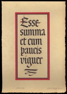 Skaggs' Holiday GreetingsHere are two of the Skaggs’ calligraphic holiday greetings:1944: printed and hand-colored broadside; 1980: original lettering for printed card, with Skaggs’ notation about the printing, including the card trim size and green ink color. |
