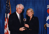 Jane Harman receiving the Spirit of Enterprise Award from U.S. Chamber of Commerce President and CEO Thomas J. Donohue, 5 February 1998.