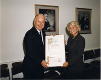 Richard J. Riodan, Mayor of Los Angeles, presenting a city council resolution to Jane Harman, October 1998.