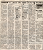 Dan Smith. "Harman banking on bipartisan stance in governor's race." The Sacramento Bee, 283 (3 May 1998)