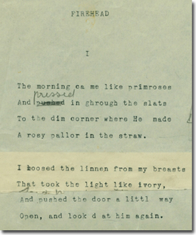 Click to read more of Lola Ridge's annotated typescript of Firehead, 1929.