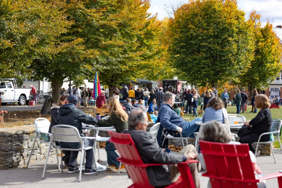 Students and family members celebrating Family Weekend on Davis Meadow, site of the underground geothermal energy system for the North District. A project to restore the meadow with native plantings and outdoor social spaces was completed over the summer—a collaboration of the Center for the Environment, Ecological Design, and Sustainability and the Botanic Garden of Smith College.