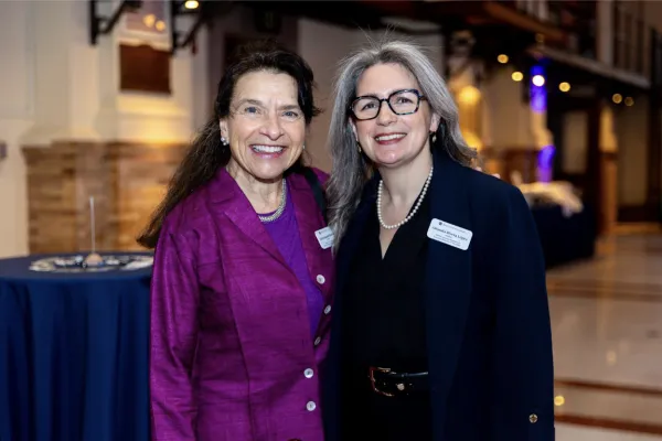 Beth Raffeld (left) with Amanda Rivera López, associate vice president for alumnae relations, at a March 2026 event for alums in Boston. Photo by Taylor Rossi.