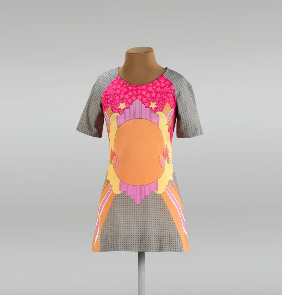 In 1968, Marta Rudolph AC ’14 was the envy of all her friends when she received this micromini dress that featured a print by psychedelic artist Peter Max—a dress that embodies ’60s rebellion.