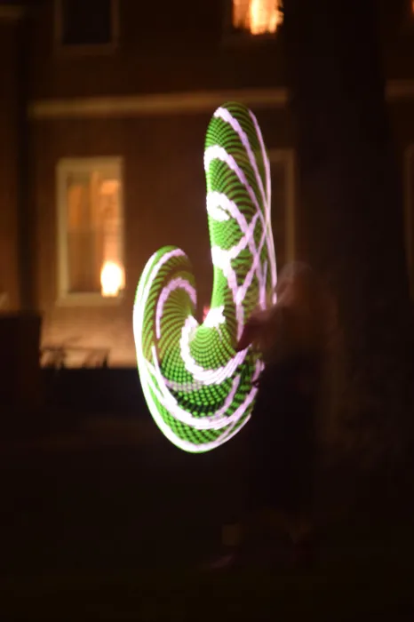 In the meantime, Fonte says she will keep dancing—and teaching. As the weather warms, you might even spot her on campus, trying out a few new LED hoops at dusk. ”I think people think, ‘That’s a little weird.‘ But I like this so much that I don’t care. It also makes me realize why would anyone want to judge someone for something that brings so much joy?” she says.