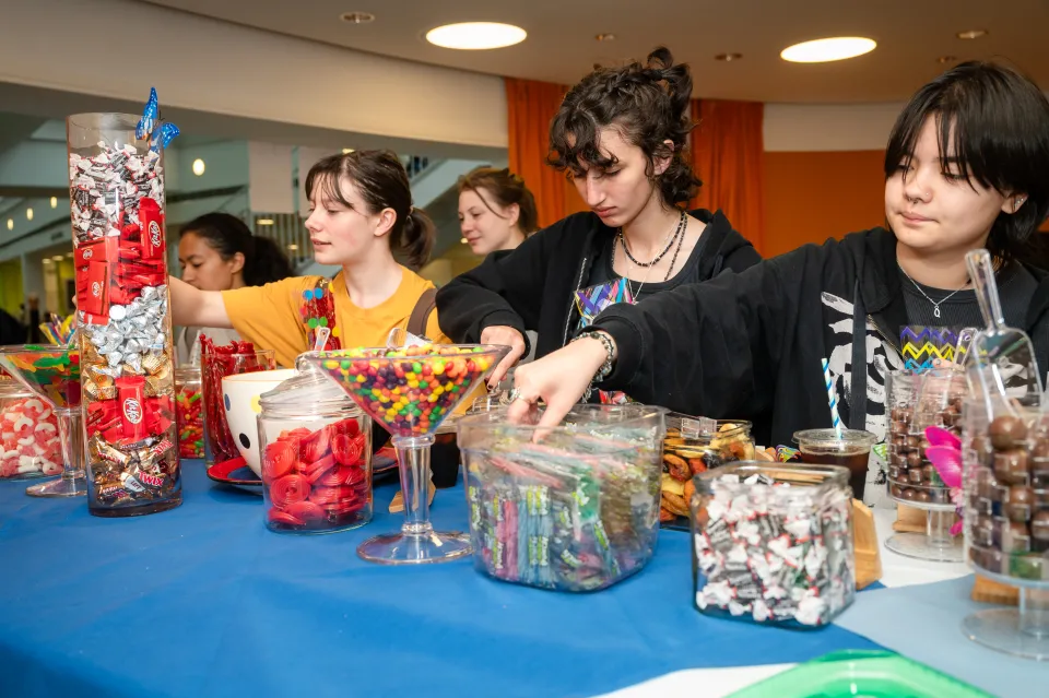 The day itself was jam-packed with all sorts of fun events, which kicked off with Smith’s dining services staff competing in a Cooking for Joy Culinary Innovators Challenge, with cook’s assistant Julian Martineau taking first place for his five-spice sous vide duck breast with blueberry compote. Other activities included crafts and dance sessions complete with a penny candy and iced coffee bar. Music was provided by DJ Madeline Richard ’26, who served up an upbeat, eclectic playlist she created with Ronny Murray ’26. The JOYcase in the middle of the day provided the perfect opportunity for student teams to showcase their projects and answer questions from students, staff, and faculty. Later in the day, the student teams delivered four-minute TEDx-style talks before winners in various categories were announced by a panel of 20 faculty and staff judges. At stake was a total of $50,000 in prize money. “The culminating event is not just about the monetary award pool, it’s about the recognition of students’ discovery and learning over the course of the experience,” says Andrea St. Louis, Ann Kaplan ’67 Director of the Conway Center. “This is an opportunity to allow students to intentionally consider what it takes for their ideas and projects to be made real in the world, while recognizing that it’s not only the destination that matters, but the journey as well.”
