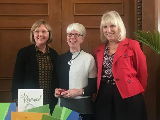 From left to right: President Kathleen McCartney; Mary Grant ’70; Susan Greene ’68, President of the Alumnae Association Board of Directors