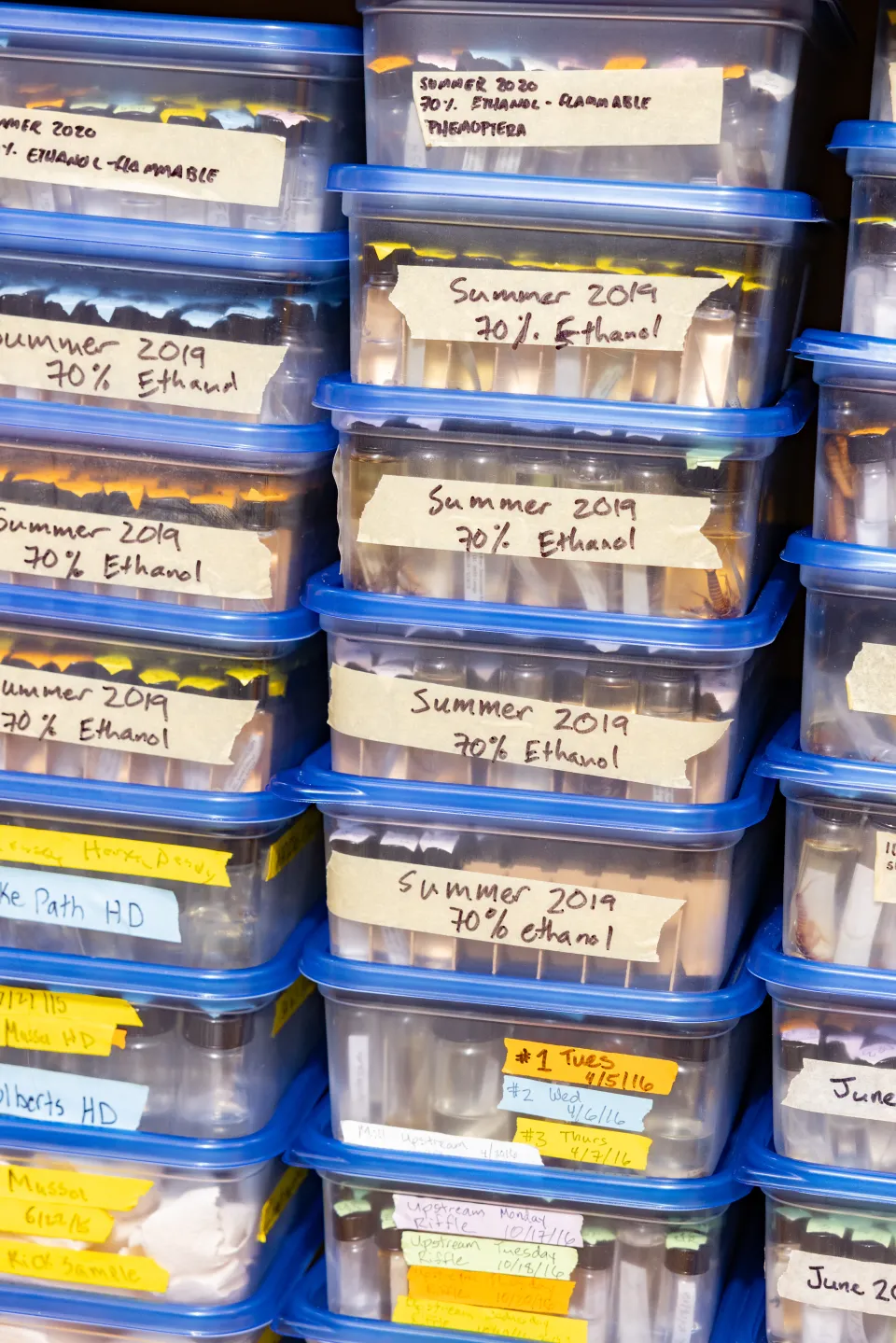 “You have to be really patient and be detail-oriented. You have to have a good eye,” notes Olsen. “If there’s a bunch of caddisflies in there, even if I think they’re the same thing, I can’t just add 20 to whatever vial. I have to look at them and make sure they have the right characteristics.”