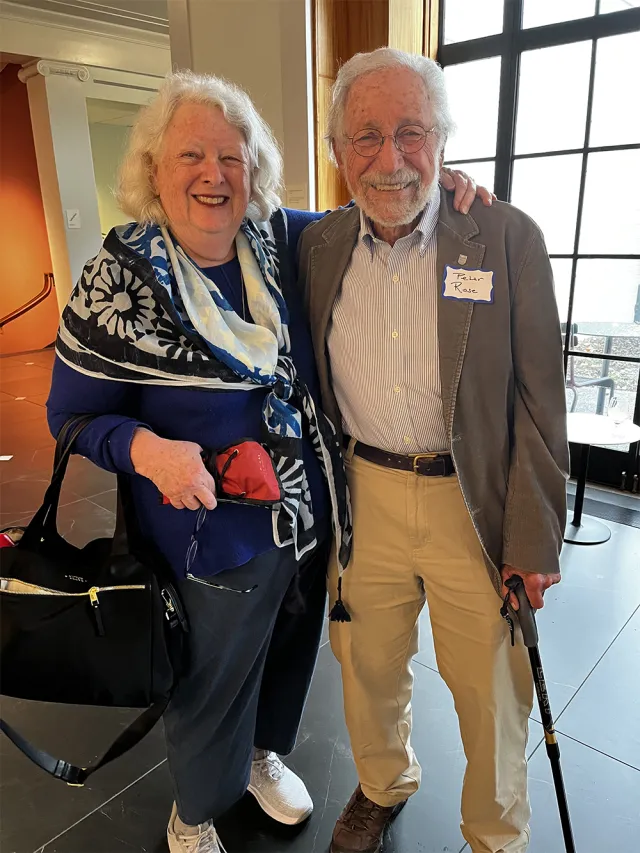 Professor Peter Rose was an inspiration to me as a Smith student, and I have been lucky enough to see him often over the years, particularly during my 10 years as a Smith trustee and subsequently as a chair of the Smith College Medal committee. Rose taught me a lot about civil rights and human rights back in the 1960s. I was honored to sit with him at President Sarah Willie-LeBreton’s inaugural dinner in 2023 and to see him when I was on campus celebrating my 80th birthday with my Northrop ’66 housemates.