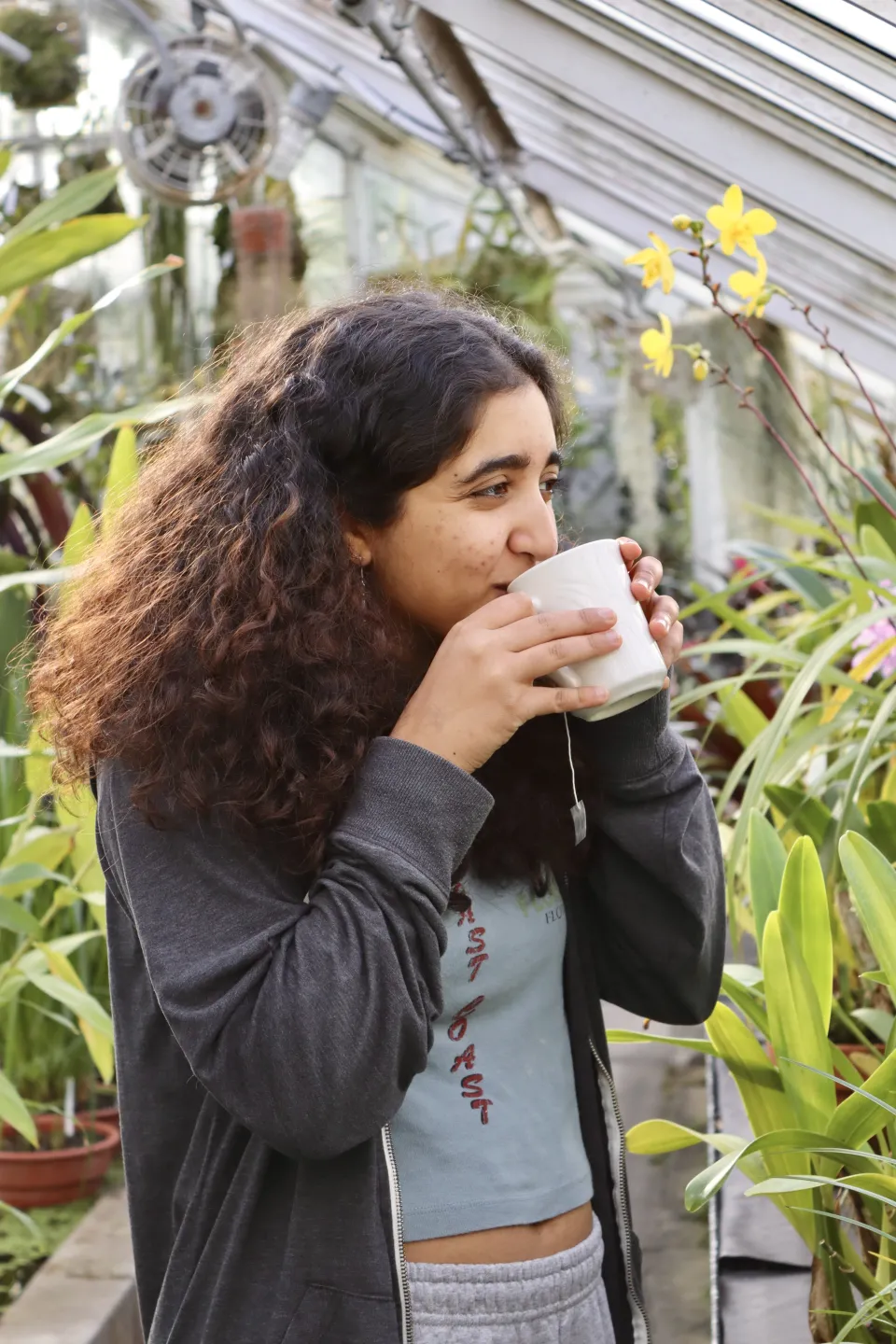 Niv Mantha ‘25 in Lyman Conservatory. Photo by Liliana Hetherman ’25