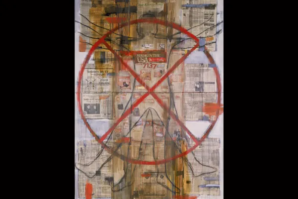 Favorite SCMA artwork: The Red Mean: Self Portrait, 1992, by Jaune Quick-to-See Smith; mixed media