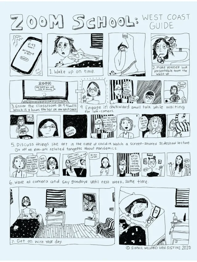 Here’s how the creative process happens. When she is drawing in her characteristic cartoony style, Sophie Willard Van Sistine ’22 of Claremont, California, thinks far ahead about what words and images she will use to tell her story.