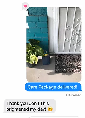 Because of the COVID-19 pandemic, this year members of the SCCLA hand delivered their care packages in gift bags, then texted images to students to let them know their care packages had been delivered.