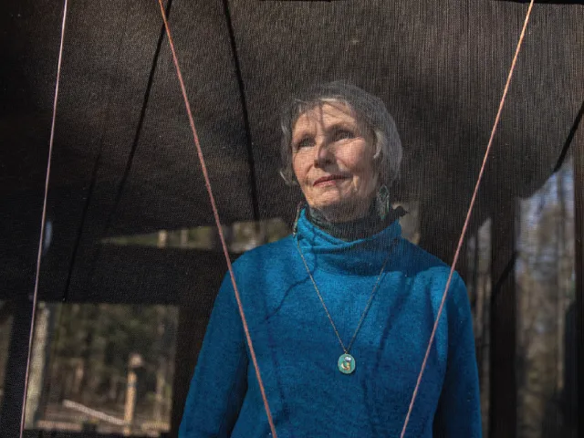 Patricia Lee Lewis ’70 looks out at her hillside retreat, a place of creativity for hundreds of writers over the years. Photographs by Mark Ostow