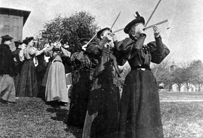 Taken in 1974, this photo shows four fashionable Smithies who had just marched in the Alumnae Parade. Do you recognize these women? Help us solve the mystery of who is in this photo! All information is welcomed at classnotes@smith.edu or by filling out this form. And check out our Instagram (@smithquarterly) for updates about this image, which was submitted by Ellen Sandhaus ’74.