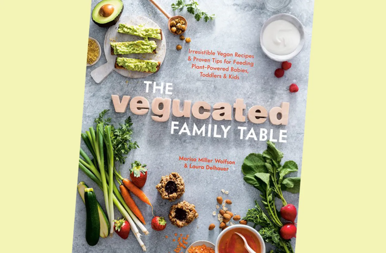 The Vegucated Family Table, co-authored by Marisa Miller Wolfson ’98 and plant-based chef Laura Delh...
