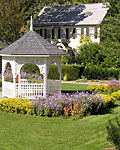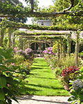 a rustic rose arbor, perennial beds, a knot garden, and a