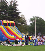 of inflatable activities, including a massive slide, a bouncy