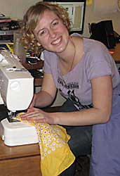Allie Machen ’07 taught students during how to sew products using recycled materials. |