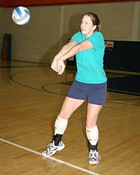 Mikal Minarich ’10 sets up a shot during volleyball