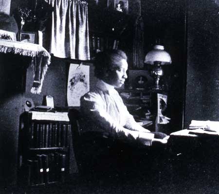 Otelia Cromwell at her desk at 190 Round Hill Road,