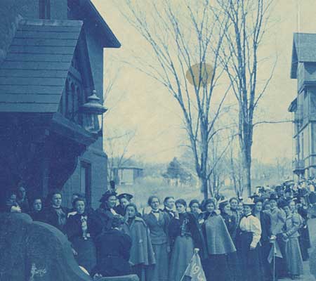 In 1900, students waited in long lines to enter the