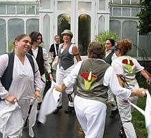 Wake Robin Morris dancers celebrating outside the Lyman
