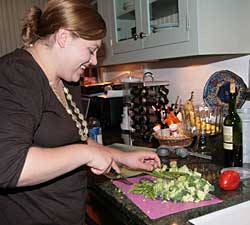 cloves, onion, red pepper, tomato, and olive oil: the makings