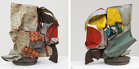 | Homer (1960), by John Chamberlain (American, 1927-1960). Painted tin and wood base, 16 x 13 1/2 x 11 in. (Photographs courtesy of Gagosian Gallery, New York N.Y.) |