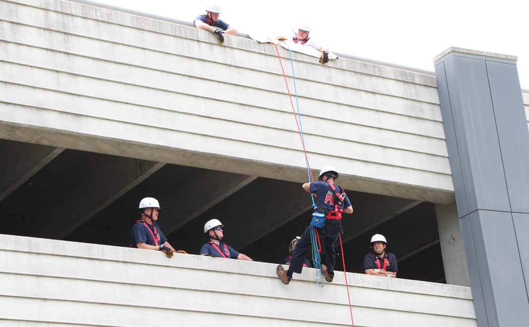 The team members will be specially qualified to conduct rescue operations at high altitudes and angles, or pulling someone out of a confined space, for example, Springman said. The campus parking facility provided an ideal training structure with its concrete walls, open spaces and central location. “It’s great to be able to have access to a facility like that,” said Springman. “Smith College has been great.”